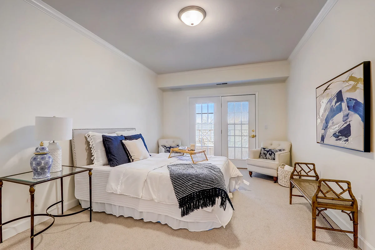 The Fig is our largest Carriage Home, inclusive of everything you could possibly desire, including ample storage and closet space and indoor/outdoor areas that include a front and back porch and four-season sun room. The large two-car garage offers access to a full laundry room. The primary bedroom has its own bathroom with dual sinks, and the secondary bedroom has a full bath located right next to it.