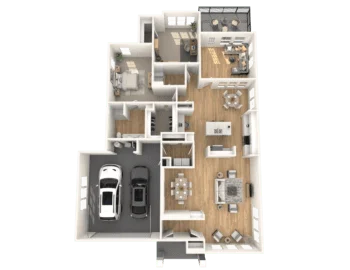 The four-season sun room and front and back patios make the Magnolia Carriage Home the perfect fit for nature lovers. The primary and secondary bedrooms include spacious walk-in closets and bathrooms. Enjoy the convenience of a built-in desk area, extra storage, and a pass-through laundry area next to the two-car garage. This carriage home also boasts a spacious foyer that opens into an expansive great room and open kitchen.