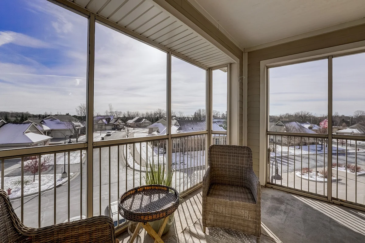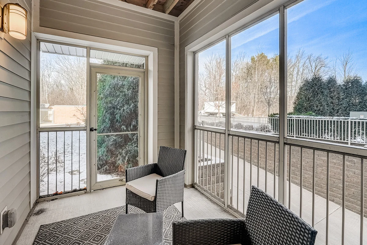 This Carriage Home features a modern open floor plan. Sip your morning coffee from your spacious front porch or back patio, read a book in your large four-season sun room, or host a dinner party in your formal dining room, which is complete with a bay window. The main bedroom has a walk-in closet and a full bathroom with dual sinks. The secondary bedroom has plenty of closet space and a hall-accessible full bath. Enjoy the convenience of a powder and laundry room combination, accessible via the foyer. There is also a spacious two-car garage.
