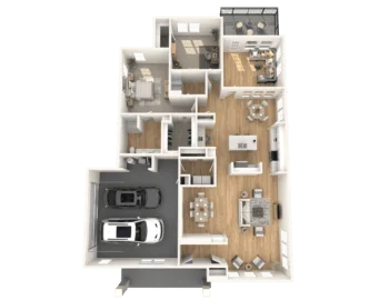 The Robin floor plan includes two spacious bedrooms. The primary bedroom has its own dedicated bathroom, and a full guest bathroom is just down the hall. The open dining and living areas flow right into your own patio or balcony, so your gatherings can easily spill outside on warm summer evenings.