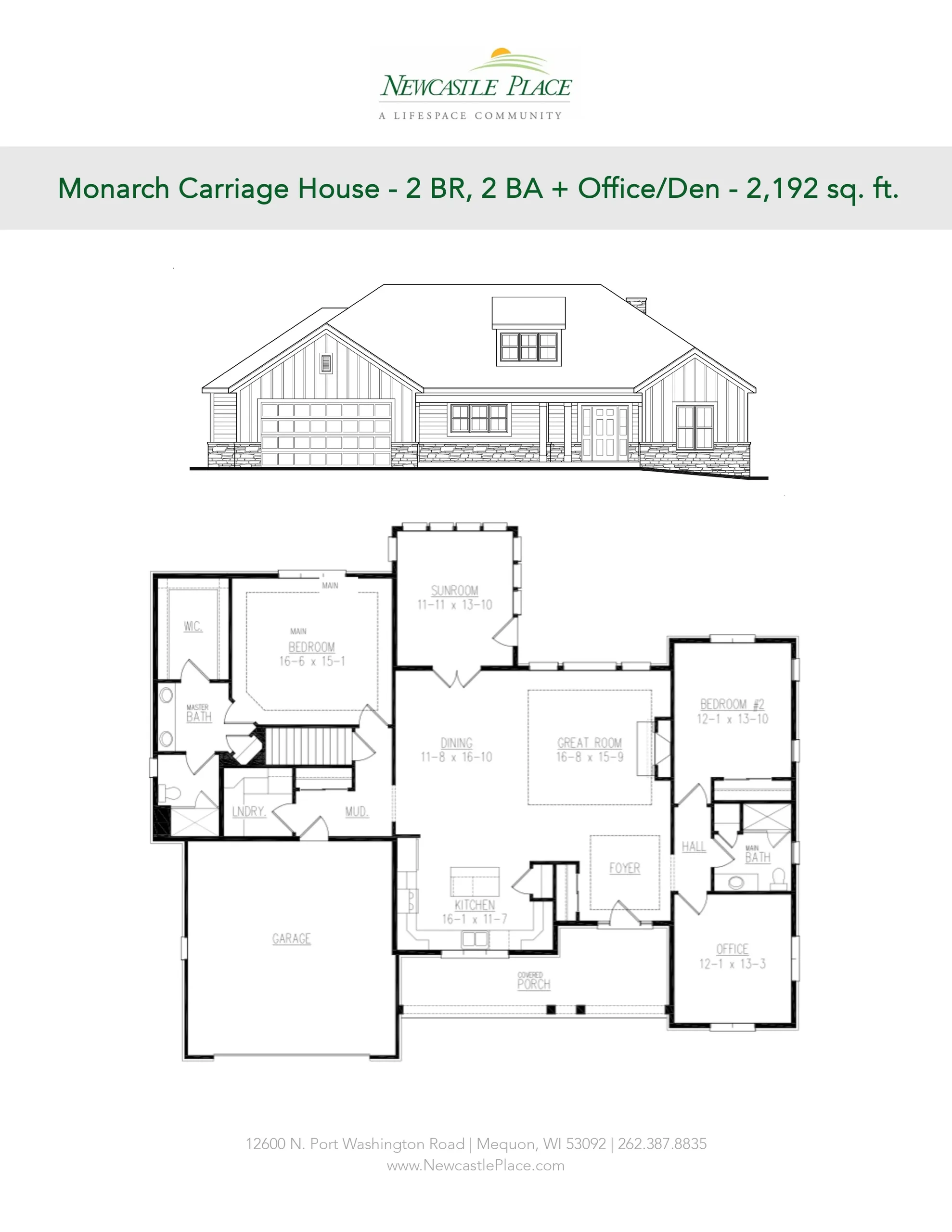 The Monarch shines with spacious interiors, including a large main suite, flexible office space, bright sunroom, guest bedroom, and a two-car garage—all thoughtfully arranged on one level. Call today to join our Wait List. Construction begins July 14 and is expected to be completed by Fall 2026.